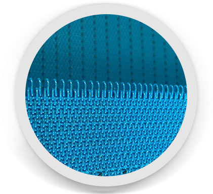 • 透氣度高進口聚酯新料,采用織線均壓技術